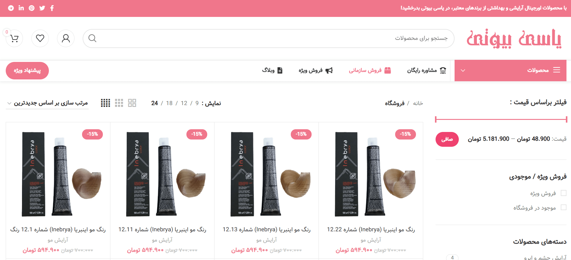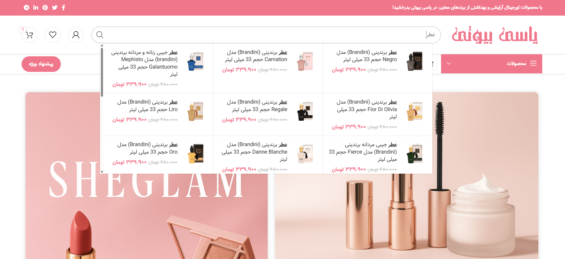 طراحی سایت فروشگاه یاسی بیوتی | نمونه کار حرفهای طراحی شرکت رسالینک