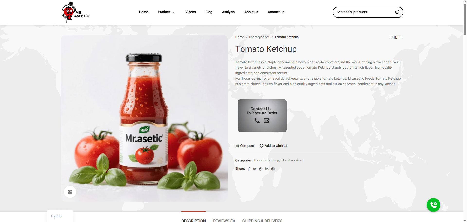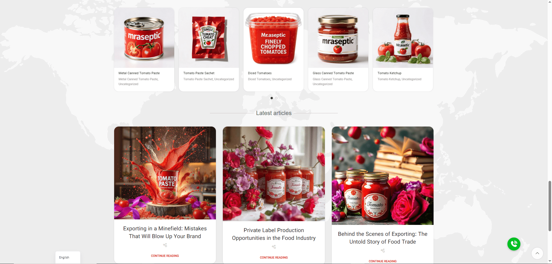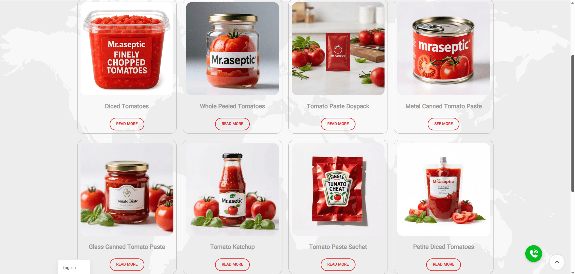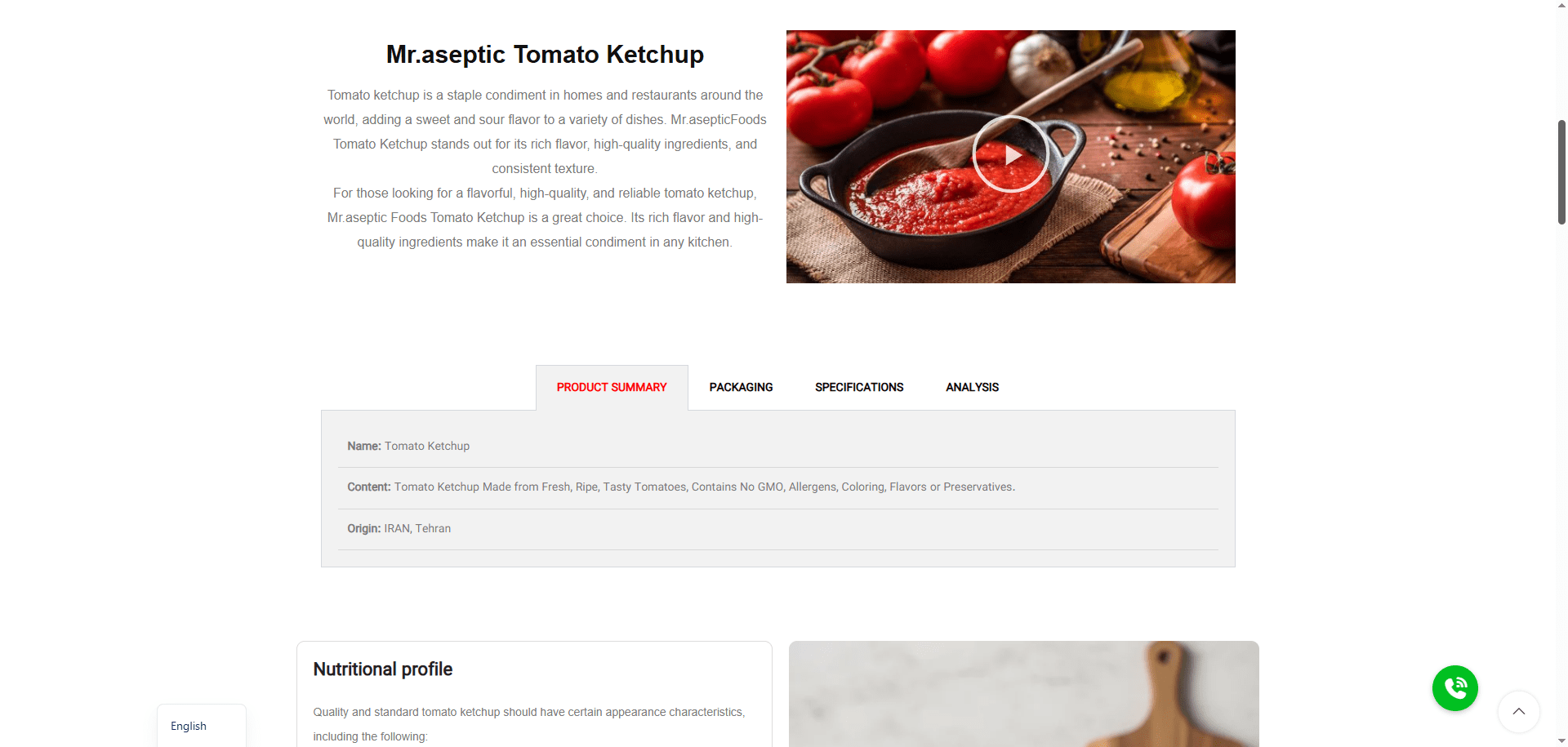 • محصولات جانبی هر محصول دارای صفحه اختصاصی با مشخصات فنی (مانند Brix، درصد مواد جامد، وزن بسته‌بندی) و تصاویر با زاویه‌های مختلف بود.