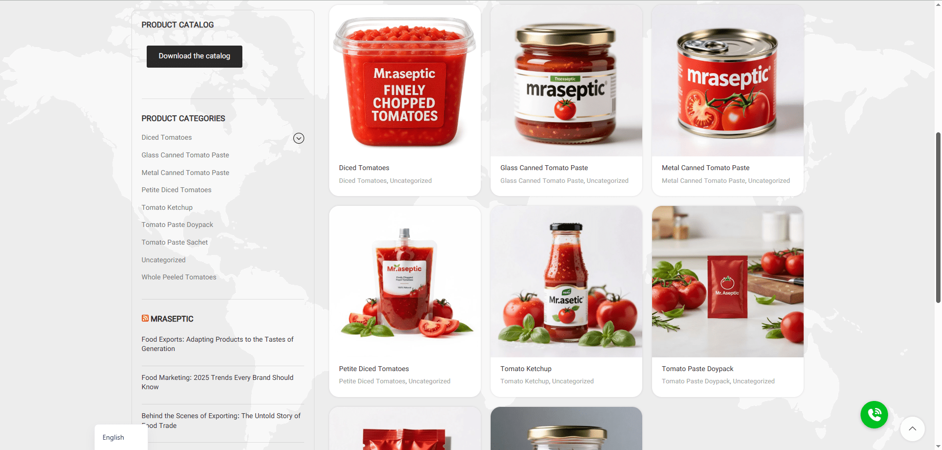 سیستم کاتالوگ بسیار قدرتمندی طراحی شد که امکان فیلتر کردن محصولات بر اساس نوع (رب، سس)، غلظت، وزن و کاربرد (خانگی/صنعتی) را فراهم می‌آورد. این امر سرعت یافتن محصول مورد نظر را به شدت افزایش داد.